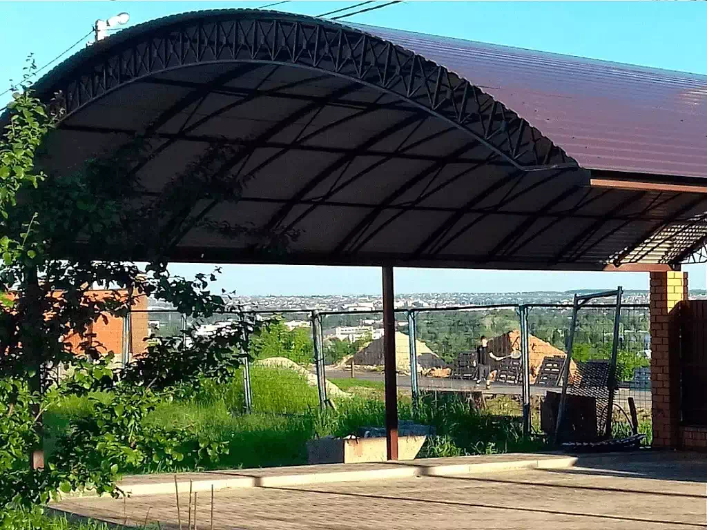 За день на даче изготовили арочный навес 5 на 7 с покрытием поликарбоната. Привезли уже готовые крашенные фермы и весь остальной материал. Все за собой убрали и увезли мусор. Молодцы!